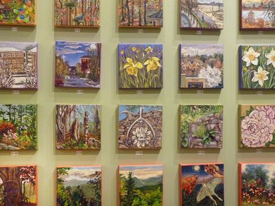 Volume VI is comprised of fifty, 6"x 6" oil paintings on gallery-wrapped canvas. Nestled into the back of each of the fifty paintings is an aluminum cradle which holds a handmade 3"x3" book that is illustrated with images of all of the fifty paintings in this volume. Every painting comes with it's own one-of-a-kind handmade book. Volume VI includes two books and an oil painting.